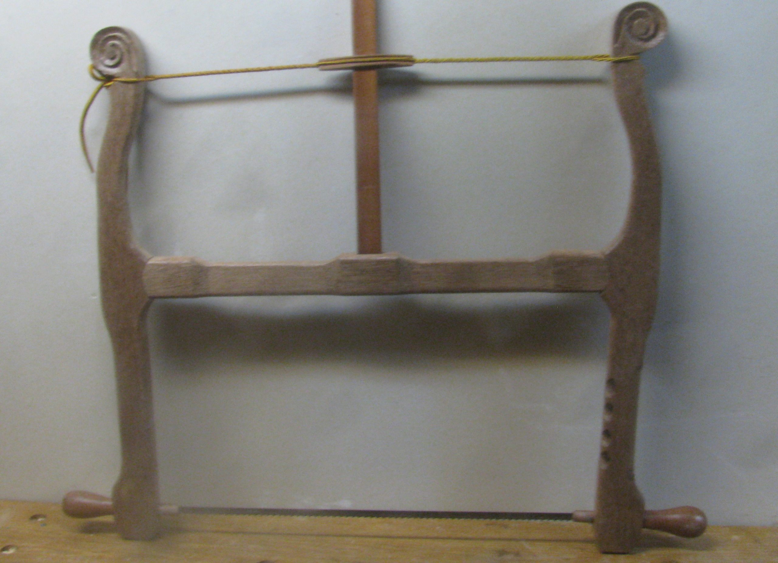 Mahogany bow saw with 3/8″ x 22″ long blade. hand carved and shaped with