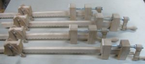 4 of 10 fabricated 24″ capacity wood bar clamps. Tested and able to